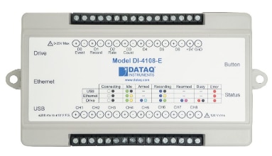 • 8 differential analog inputs • Expandable using ChannelStrech TM • 16-bit measurement resolution • ± 200mV to ± 10V measurement range • Anti-aliasing Filter per Channel • 160 kHz analog throughput rate • Records to PC or USB flash memory • Includes WinDaq and Net class